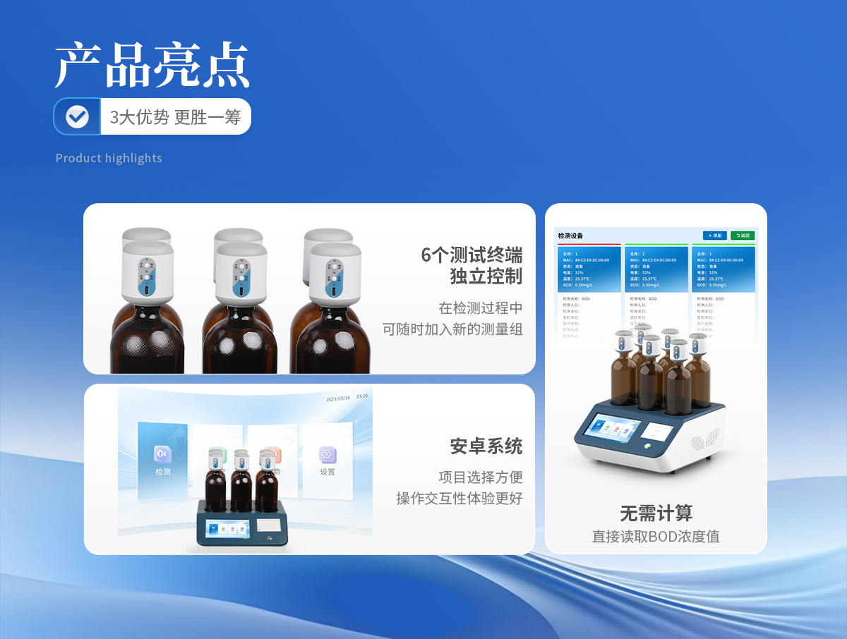 生化需氧量(BOD)測定儀是參考****《HJ505-2009》5日培養(yǎng)法,模擬自然界中有機物的生物降解過程,采用簡單、安全、可靠的無汞壓差感測法測量水中BOD濃度;全智能化設計,**的研發(fā)工藝和設計制造,實驗過程無需實驗人員值守;適用于排污企業(yè)、環(huán)境監(jiān)測、污水處理廠、第三方檢測機構、科研、高校等領域的生化需氧量測定。