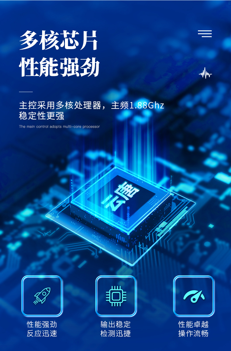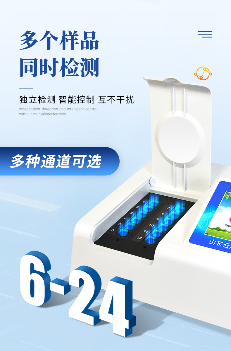 | 主控芯片采用ARM Cortex-A7,RK3288/4核處理器,主頻1.88Ghz,運轉速度更快速,穩定性更強。 | 顯示方式:7英寸液晶觸摸屏顯示,人性化中文操作界面,讀數直觀、簡單。 | 直流12V供電,可連接車載電源,可配6ah大容量充電鋰電池,方便戶外流動測試。 | 智能恒流穩壓,光強自動校準,長時間連續工作光源無溫漂現象。 | 不間斷進樣,連續檢測 | 樣本編號自動累加。 | 檢測項目可擴充。 | 檢測結果可批量打印,批量上傳。 | 檢測結果為Excel表格,連接電腦即可拷貝。 | 可配置大容量鋰電池,固件可升級 |