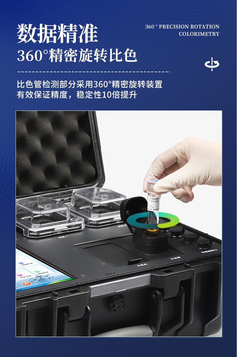 設備簡介: YT-B04型便攜式COD氨氮總磷總氮檢測儀采用高強度PVC工程塑料手提箱設計,消解檢測一體式設計,其中消解模塊具備雙溫區功能,檢測部分同時具備360°旋轉比色管檢測和比色皿檢測,安卓···
