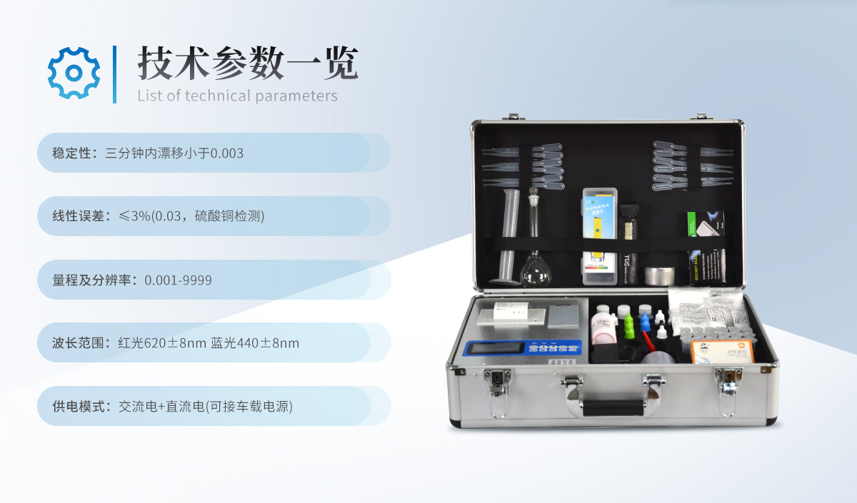 | 電源:交流 220±22V 直流 12V+5V(儀器內置鋰電池也可用車載電源) | 功率: ≤5W | 量程及分辨率:0.001-9999 | 重復性誤差: ≤0.03%(0.0003,重鉻酸鉀溶液) | 儀器穩定性:一個小時內顯示數字無漂移(透光度測量);兩個小時內數字漂移不超過0.3%(0.003,透光度測量)、0.001(吸光度測量)。 | 線性誤差: ≤0.1%(0.001,硫酸銅檢測) | 靈敏度:紅光≥4.5 ×10-5 藍光≥3.17×10-3 綠光≥2.35×10-3 橙光≥2.13×10-3 | 波長范圍 :紅光:680±2nm; 藍光:420±2nm; 綠光:510±2nm;橙光:590±4nm | PH值(酸堿度): (1)測試范圍:1~14 (2)精度:0.01 (3)誤差:±0.1 | 含鹽量(電導):(1)測試范圍:0.01%~1.00% (2)相對誤差:±5% | 土壤水分技術參數水分單位:﹪(g/100g);含水率測試范圍:0-100﹪;誤差小于0.5% | 顯示屏分辨率:1024*600 | 抗震等級:IP65 | 儀器尺寸:48×34.5×22cm | 主機凈重:5.2kg |