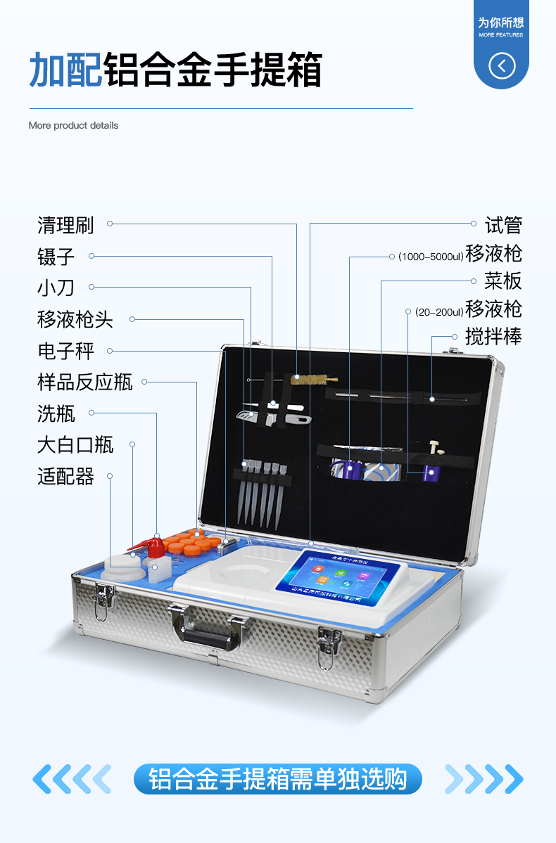 | 1、安卓智能操作系統,采用更加**和人性化操作,儀器具有網線連接、wifi聯網上傳、GPRS無線遠傳功能,快速上傳數據。 | 2、智能化程度高,儀器具有自檢功能:具有開機自檢和調零功能,具有自動檢測重復性功能。 | 3、檢測通道:≥12個檢測通道,可以同時測試多個樣品,每個樣品由程序控制分別獨立工作,不會互相干擾。 | 4、顯示方式:≥8英寸液晶觸摸屏顯示,人性化中文操作界面,讀數直觀、簡單。 | 5、配備新一代嵌入式熱敏打印機,可選擇手動打印或者自動打印,檢測完成可自動打印檢測報告和二維碼。 | 6、光源采用進口超高亮發光二極管,高精度、穩定性強、光源可控、可以關掉不使用的光源,功耗更低。 | 7、采用USB2.0接口設計,方便數據的存貯和移動,并可隨時與計算機直接相連,并且可用計算機控制儀器。實現數據查詢、瀏覽、分析、統計、打印等。 | 8、儀器帶有監管平臺。數據可局域網和互聯網數據上傳,檢測結果直接傳至食品安全監管平臺。進行區域食品安全監管及大數據分析處理,檢測區域食品安全長短期動態,達到食品安全問題預估、預警 | 9、儀器具有品類多種類樣品菜單庫,可靈活選擇檢測樣品,不同的檢測通道可同時檢測不同的樣品項目。 | 10、樣品處理簡單省力,整體操作快速、安全、便捷。 | 11、儀器具有自身保護功能,可設置用戶名及密碼,防止非工作人員操作等。 | 12、高靈敏度,高檢測精度,高重復性精度,掃描式高精度光學傳感器。 | 13、內置強大的數據庫,可在儀器上直接選擇樣品名稱、檢測指標、送檢單位等信息,也可在儀器上直接編輯錄入樣品名稱、檢測指標、送檢單位等信息并保存進樣品數據庫。 | 14、儀器具有重新校準、鎖定、恢復出廠設置功能。 | 15、支持U盤存儲。 結果判定線可修改,對照值標定值可保存,斷電不丟失數據。 |