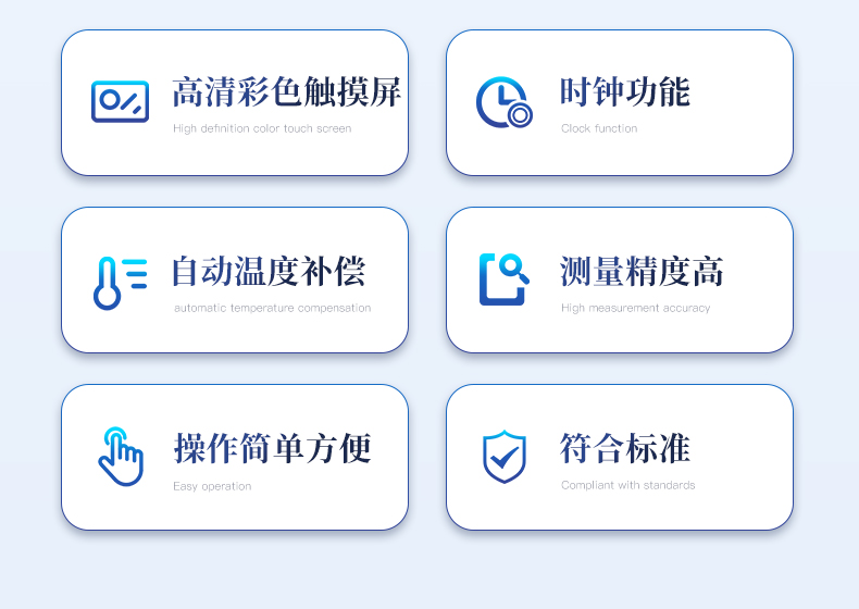 | 儀器采用等一點(diǎn)標(biāo)定,簡單方便,保證測(cè)量精度; | 自動(dòng)溫度補(bǔ)償;動(dòng)態(tài)張力曲線顯示; | 時(shí)鐘功能,掉電存儲(chǔ)功能; | 高清晰彩色觸摸屏,操作更加方便; |