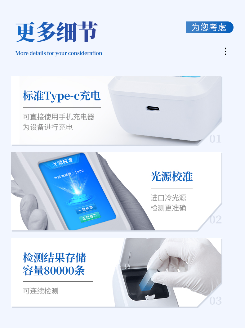檢測方法:光電比色測試模式:濃度波長范圍:340~800nm系統:安卓智能操作系統波長選擇:自動顯示屏幕:3.5寸彩色液晶屏穩定性:<0.5%靈 敏 度(吸光度):0.001使用環境:0~50℃ 0~90%的相對濕度數據存儲:80000條以上通訊:Type-C、WIFI、藍牙電池:5600mAh鋰電池連續工作時間:12小時供電電壓:5V/DC直流尺寸:18cm*8cm重量:700g支持語言:簡體中文或英文