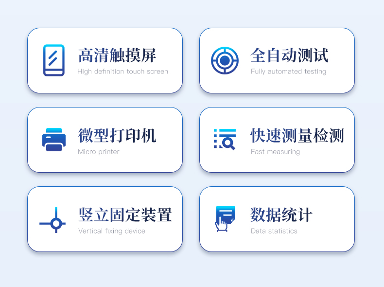 | 1、采用芯片控制,高精度測力傳感器,精度高。 | 2、采用高性能步進電機,精密滾珠絲桿傳動,保證該儀器傳動精準。 | 3、大觸摸屏中文顯示,友好人機界面操作。全自動完成測試。操作方便,具有測試數據統計處理功能,微型打印機輸出。 | 4、隨機配備蛋殼豎立固定裝置,方便快速測量。 |