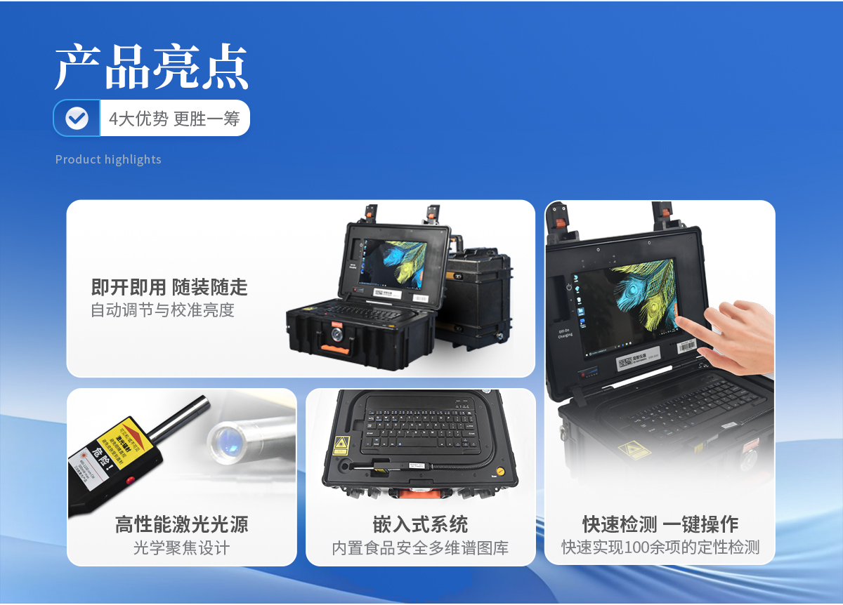 | 食品違禁添加物、色素添加、農獸藥殘留檢測 | 爆炸物、危險化工品、易燃易爆品檢測 | 珠寶玉石鑒定、文物鑒別 | 生物醫藥檢測、材料表征、地址勘探等 | 其他各類訂制應用 |