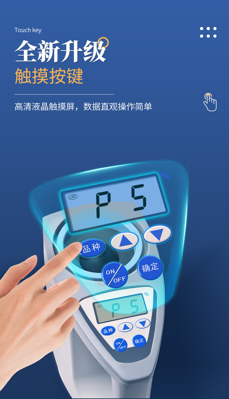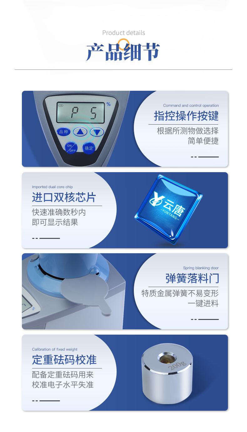 產品簡介: YT-L80型糧食水分測定儀是老型糧食水分測定儀的升級產品、在原來的基礎上增加了自動累加測量次數,計算平均值功能和容量自動換算顯示功能,其性能更穩定可靠,擁有外觀設計國家專利,···