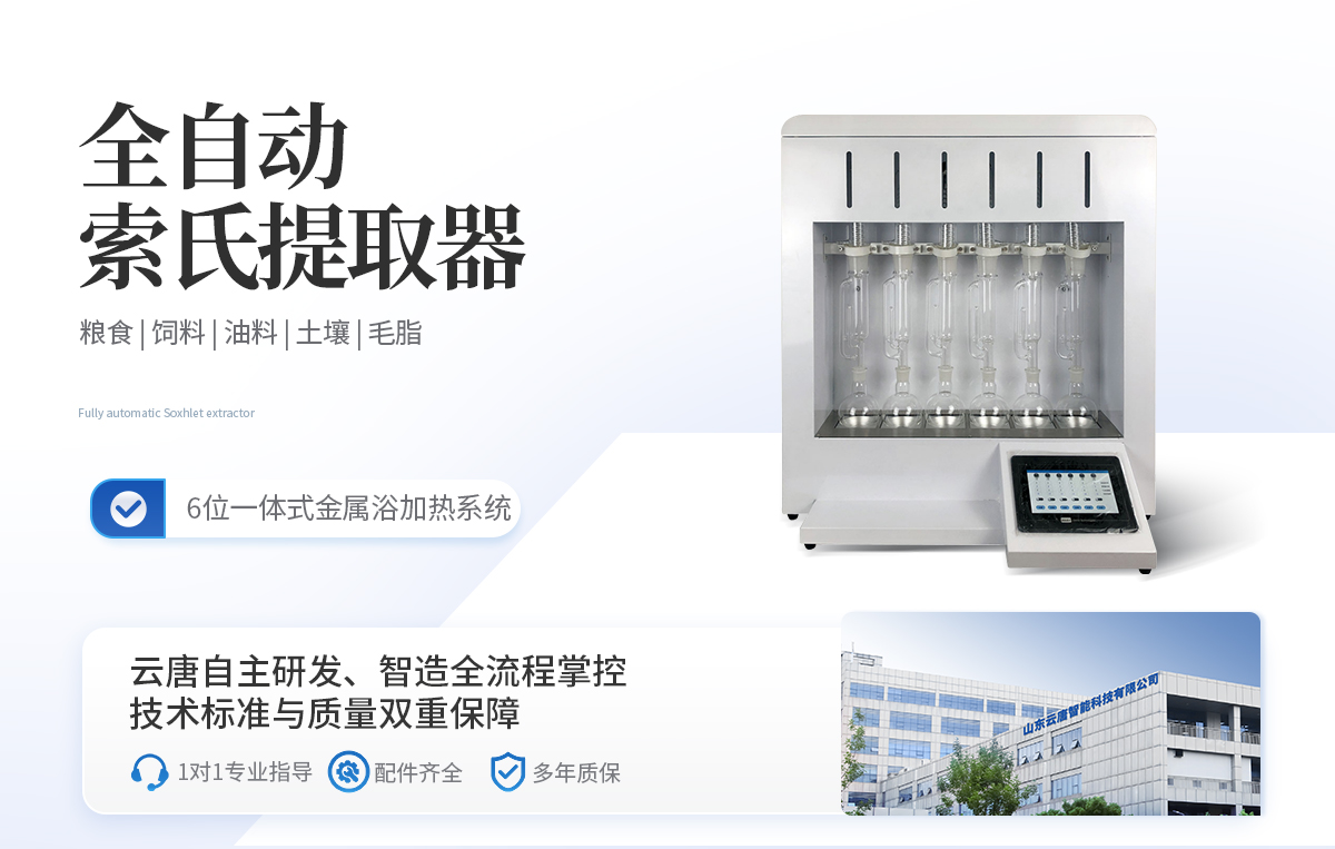 索氏提取器是從固體物質中萃取化合物的一種方法,主要用于粗脂肪含量的測定,廣泛存在于提取糧食、飼料、油料、土壤,毛脂等各種樣品脂肪的含量,可以作為鑒別其品質優劣的一個指標,是我國食品糧油土壤等分析優選的標準方法,我司結合客戶使用要求,推出干式加熱方式提取,大大加快了提取速度,節約實驗時間,適用JT/T 533-2020,粒狀木質素纖維吸油率、造粒劑含量及旋轉黏度試驗