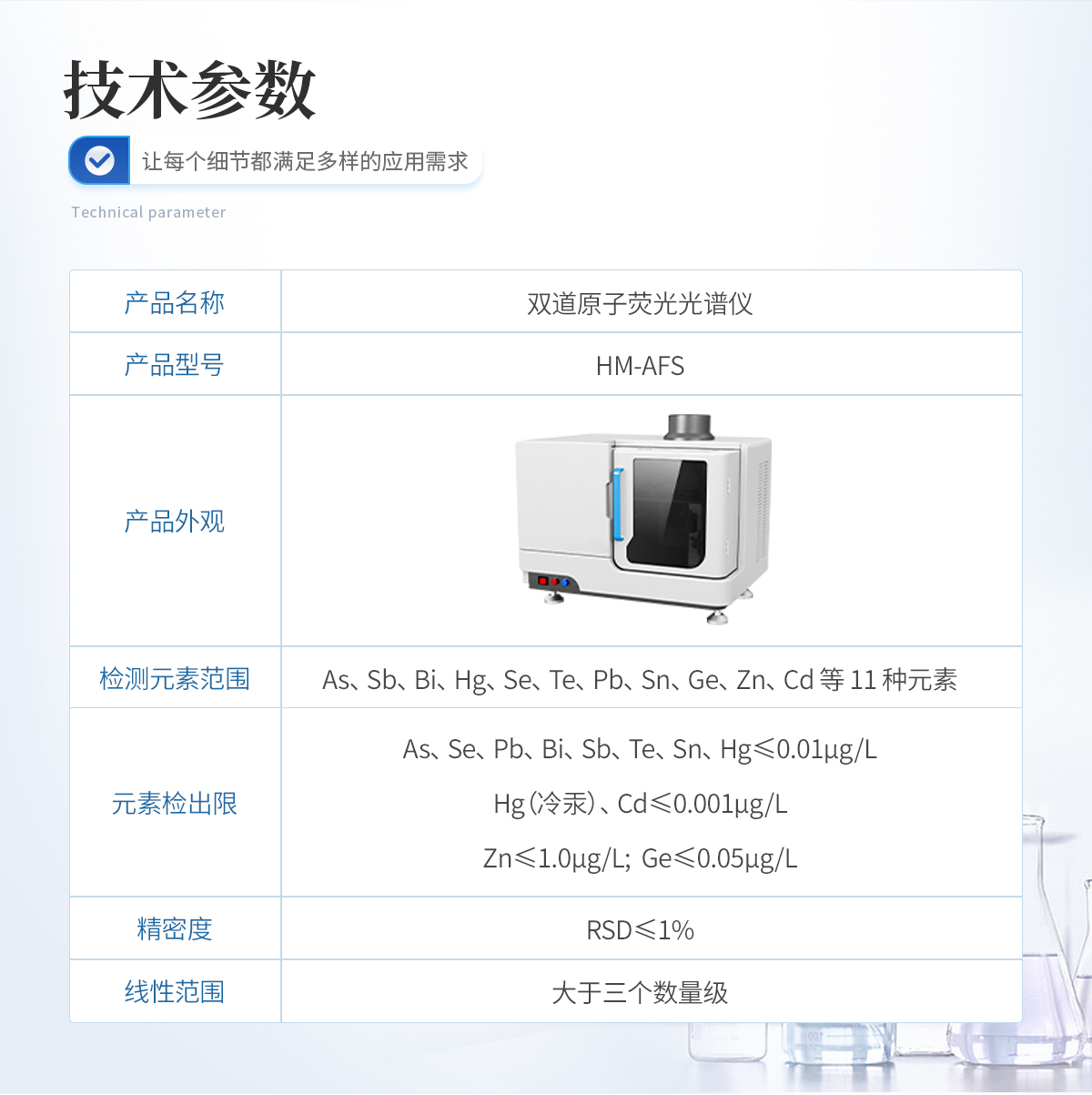 1、檢測元素范圍 As、Sb、Bi、Hg、Se、Te、Pb、Sn、Ge、Zn、Cd 等 11 種元素。 |