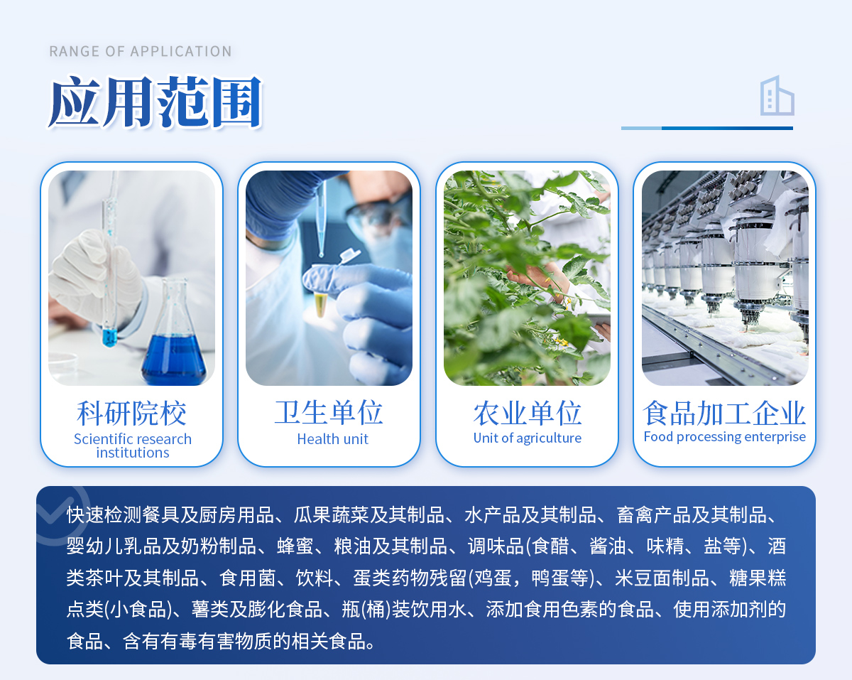 山東云唐智能科技有限公司生產的食品安全綜合分析儀,采用多功能集成、箱儀一體化設計,以高強度安全防護箱為載體,內部集成多個檢測功能,適用于食藥監局、衛生部門、高教院校、科研院所、農業農村局、食品深加工企業及檢驗檢疫部門等單位。