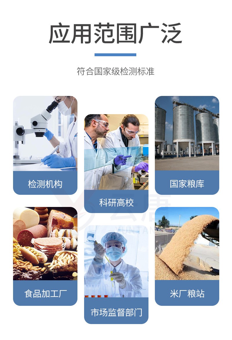 | 1.儀器能同時檢測大米、糧食、糧食制品、飼料、飼料原料中重金屬鎘、鉻、鉛、銅等指標。 | 2.具有免疫層析膠體金檢測快速檢測分析方法,可擴展檢測真菌毒素、農藥殘留,系統采用手提或拉桿設計,滿足現場及流動檢測的需求。 | 3.內置操作系統,一體式電腦控制,無需外接電腦,能耗≦15W,檢測數據和位置信息可發送至網絡或數據平臺,能夠與各類監測信息系統實現無縫對接。配合信息管理平臺進行區域安全監管及大數據分析處理,方便食品安全問題預估、預警。 | 4.內置無線傳輸模塊,USB接口,RS232接口,以太網口,數據既可通過無線和有線連接傳輸,可添加內置GPS定位模塊,可實時定位。 | 5.檢測儀尺寸:儀器重量3.0kg,7寸彩色電阻觸摸顯示屏,內存:≥2.05GB,內置微型打印機,無需外接打印設備即可現場打印數據。 | 6.220V電源,車載電源,適合野外現場操作。 | 7.完備的數據庫功能(實時顯示,存儲/20000個以上測試結果、分析、導出、打印、處理檢測數據),膠體金檢測卡模塊儲存記錄有檢測時間、檢測單位、檢測人員、檢測項目、樣品編號、檢測結果、參考值等。 | 8.免疫層析膠體金檢測模塊 | (1)采用掃描成像技術及免疫層析膠體金技術,可實現重金屬(鎘、鉛)快速定量檢測分析; | (2)檢測卡卡槽:≤8×2×0.5cm,檢測方式:掃描,掃描精度CV≤1.0%,檢測時間≤5秒,測量重復性≤3%,光源:獨立穩定恒流光源,探測器:超敏光電傳感器。 | (3)標準曲線錄入方式:每批檢測卡試劑盒配有標準曲線ID卡,標準曲線錄入采用自動讀取,檢測過程無需準備標準品或質控品校準,操作簡單; | (4)檢測卡采用兩線法設計,定量檢測精密度(cv):檢測卡批內小于15%、批間小于20%,檢測卡采用塑料單卡獨立包裝,防止檢測條因暴露于環境而被污染且便于使用和保存,有效期:常溫保存6個月有效,2-8℃保存1年有效; | (5)前處理方法統一:重金屬鎘和重金屬鉛前處理方法統一,可一次提取分別檢測,提升效率; | (6)重金屬鎘、鉛檢測產品具有糧食系統國家級檢測機構產品評價報告。 | 9.恒溫孵育器 | (1)適用于定量膠體金試紙卡和反應液體**控溫反應,以提高準確性; | (2)孵育卡槽采用全封閉設計有利于**控溫,孵育器卡槽數6個,孵育孔數:6個,控溫溫度:37℃,控溫精度≤0.5℃,升溫速度≤10min,溫度均勻性≤0.3℃,實時溫度顯示精度:0.1℃。 | 10.振蕩器 | (1)振蕩方式:圓周多種模式混勻,可以觸發式點動運行、可長時間連續運行,振蕩速度范圍廣,0-2500rpm/min,低速平穩,高速強勁; | (2)能同時振蕩提取8個樣品,操作時無需操作人員來固定樣品進行振蕩,減小個人操作差異,提高檢測準確性。 | 11.迷你離心機:轉速:1000—12000rpm,可自行設定離心轉速和時間,體積:20×18×13cm,重量:1.5kg。 | 12.粉碎機:功率≥0.15 千瓦 破碎粒徑:小于 0.15mm 破碎樣品基本過 20 目篩網。 | 13.電子稱:量程:0~200g,分度值:0.01g,不銹鋼稱臺,LCD 顯示器,多種稱量單位選擇。 | 14.移液器:100~1000μL移液器 1支, 20-200μL移液器 1支,輕巧的移液操作按壓力,長時間操作不會造成肌肉損傷,移液結果。 | 15.檢測項目 | 1.項目:重金屬鎘;檢出限:0.02ppm;檢測范圍:0-1ppm | 2.項目:重金屬鉛;檢出限:0.02ppm;檢測范圍:0-1ppm | 3.項目:重金屬銅;檢出限:0.2ppm;檢測范圍:0-20ppm | 4.項目:重金屬汞;檢出限:0.01ppm;檢測范圍:0-0.3ppm | 5.項目:重金屬鉻;檢出限:0.05ppm;檢測范圍:0-5ppm | 6.項目:重金屬砷;檢出限:0.02ppm;檢測范圍:0-1ppm |