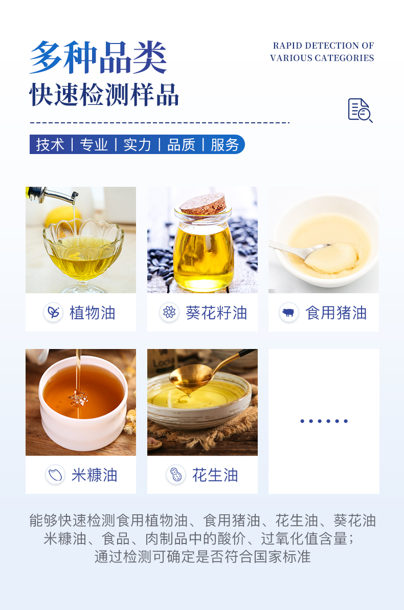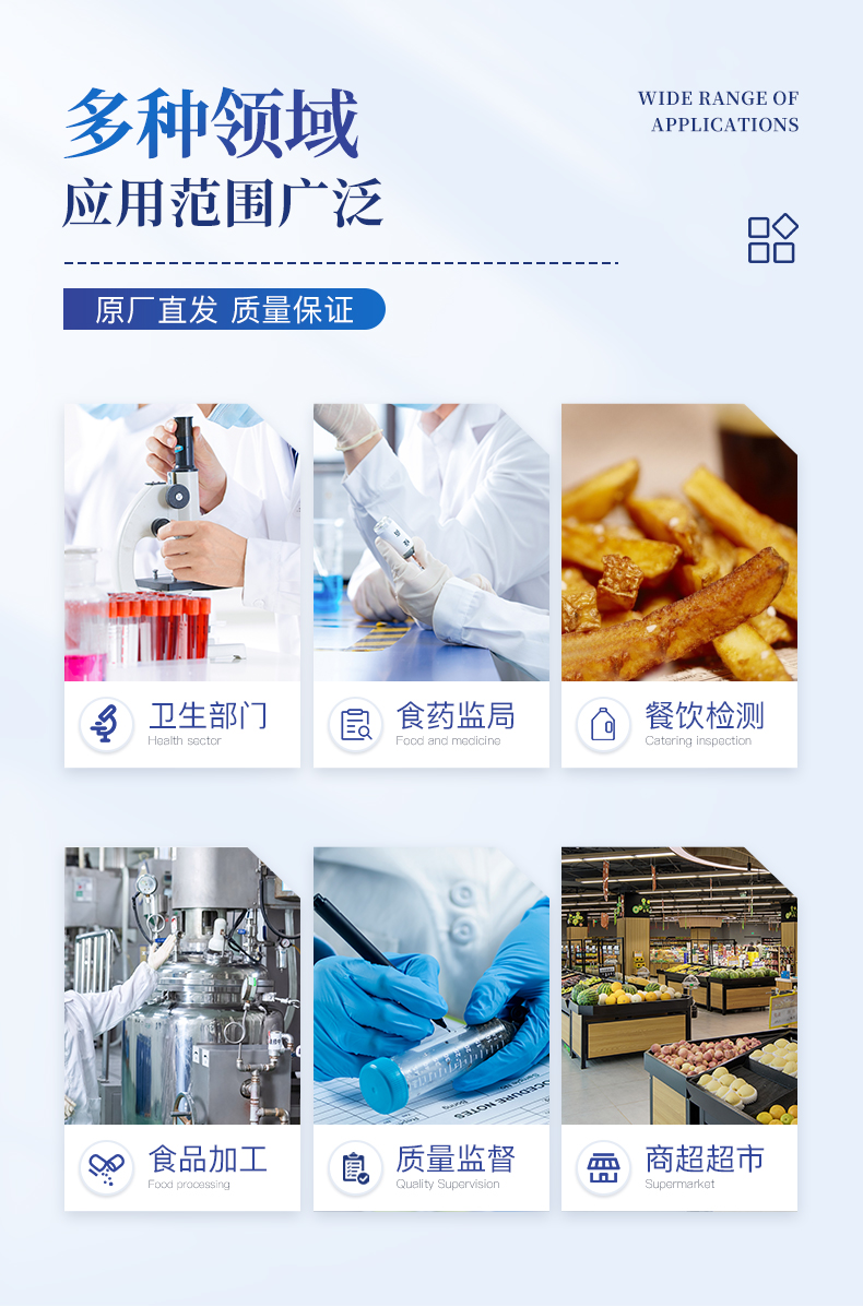 廣泛應用于質量監(jiān)督檢驗、工商管理、油炸食品生產(chǎn)基地、食藥監(jiān)局、衛(wèi)生部門、肉制品食品深加工企業(yè)、商場超市、各大食品安全監(jiān)測系統(tǒng)等單位使用。