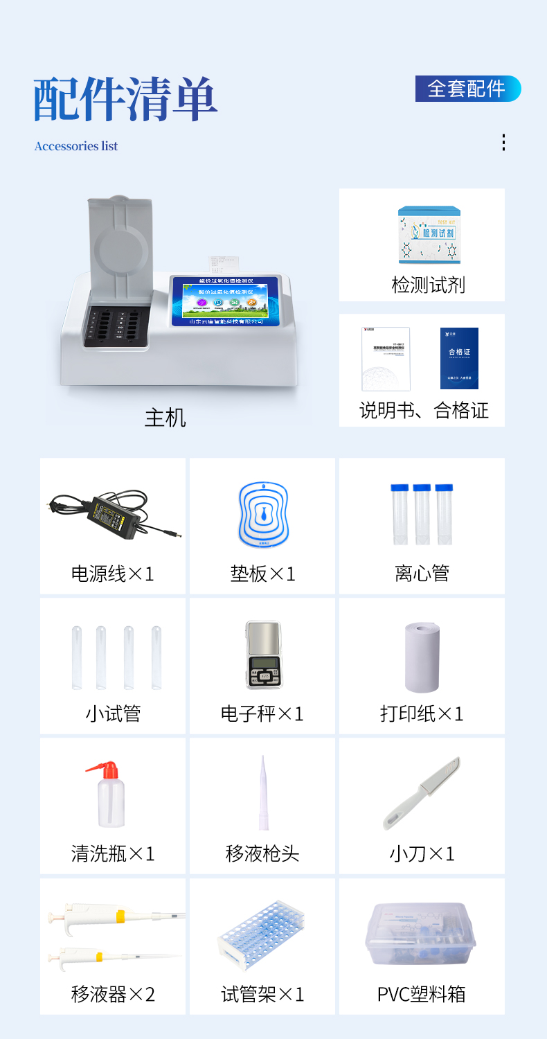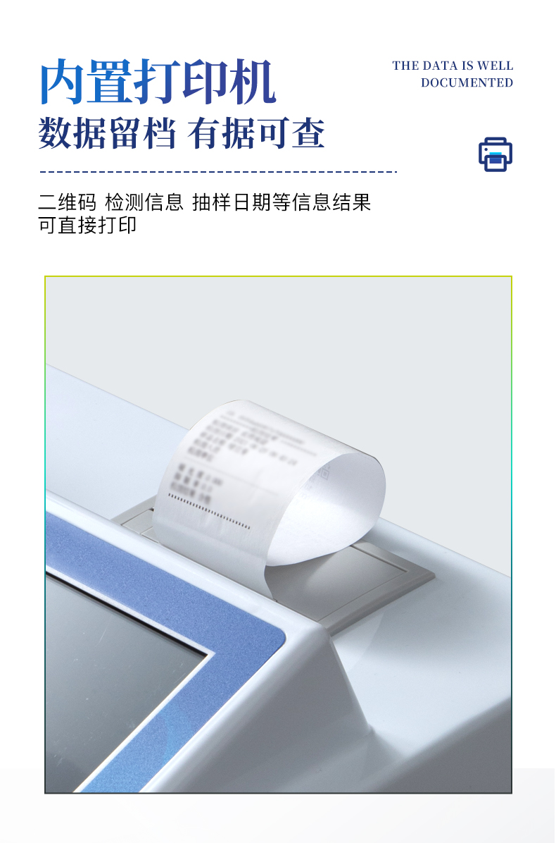 | 安卓智能操作系統(tǒng),采用更加**和人性化操作,儀器具有網(wǎng)線連接、wifi聯(lián)網(wǎng)上傳、GPRS無線遠傳功能,快速上傳數(shù)據(jù)。 | 一體化便攜式快檢設備,滿足現(xiàn)場及流動檢測使用需求,能夠在同一軟件下實現(xiàn)所有檢測項目的檢測,并可通過同一窗口直觀顯示檢測結果。 | 智能化程度高,儀器具有自檢功能:具有開機自檢和調零功能,具有自動檢測重復性功能。 | 檢測通道:≥12個檢測通道,可以同時測試多個樣品,每個樣品由程序控制分別獨立工作,不會互相干擾。 | 顯示方式:≥8英寸液晶觸摸屏顯示,人性化中文操作界面,讀數(shù)直觀、簡單。 | 配備新一代嵌入式熱敏打印機,可選擇手動打印或者自動打印,檢測完成可自動打印檢測報告和二維碼。 | 光源采用進口超高亮發(fā)光二極管,高精度、穩(wěn)定性強、光源可控、可以關掉不使用的光源,功耗更低。 | 采用USB2.0接口設計,方便數(shù)據(jù)的存貯和移動,并可隨時與計算機直接相連,并且可用計算機控制儀器。實現(xiàn)數(shù)據(jù)查詢、瀏覽、分析、統(tǒng)計、打印等。 | 儀器具有品類多種類樣品菜單庫,可靈活選擇檢測樣品,不同的檢測通道可同時檢測不同的樣品項目。 | 樣品處理簡單省力,整體操作快速、安全、便捷。 | 儀器具有自身保護功能,可設置用戶名及密碼,防止非工作人員操作等。 | 高靈敏度,高檢測精度,高重復性精度,掃描式高精度光學傳感器。 | 過氧化值檢測儀器具有重新校準、鎖定、恢復出廠設置功能。 | 結果判定線可修改,對照值標定值可保存,斷電不丟失數(shù)據(jù)。 |