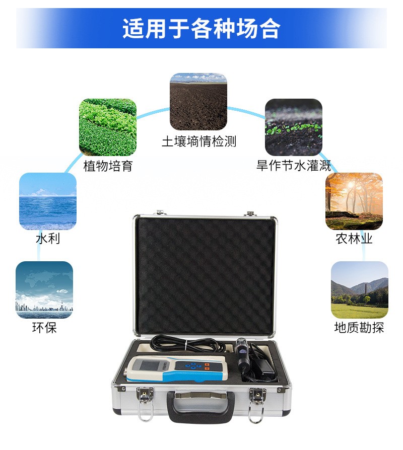 土壤水分測定儀采用FDR頻域反射原理,快速準確測量土壤中含水量,可對多處樣地、不同土壤深度的水分含量進行快速檢測和長期連續監測。廣泛應用于土壤墑情檢測、旱作節水灌溉、精細農業、林業、地質勘探、植物培育等領域。