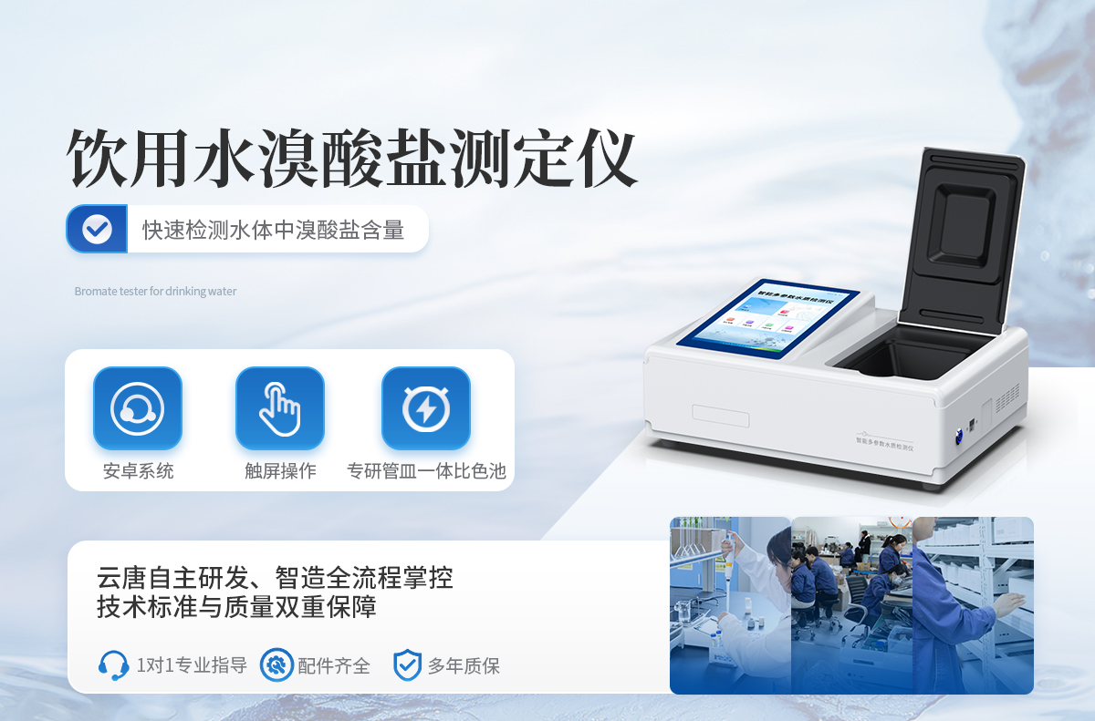 水質(zhì)溴酸鹽快速檢測儀是一款檢測快速檢測水體中溴酸鹽含量的儀器,適用于經(jīng)臭氧消毒后的礦泉水、凈化水、純凈水和各種包裝飲用水中溴酸鹽的定量檢測。