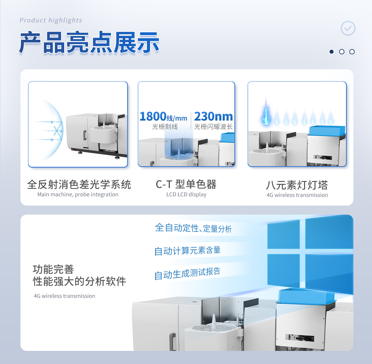 4、 八元素燈燈塔 一燈工作,*多可以七燈預熱,節省了換燈和預熱時間,使元素測量更加快捷方便。 |