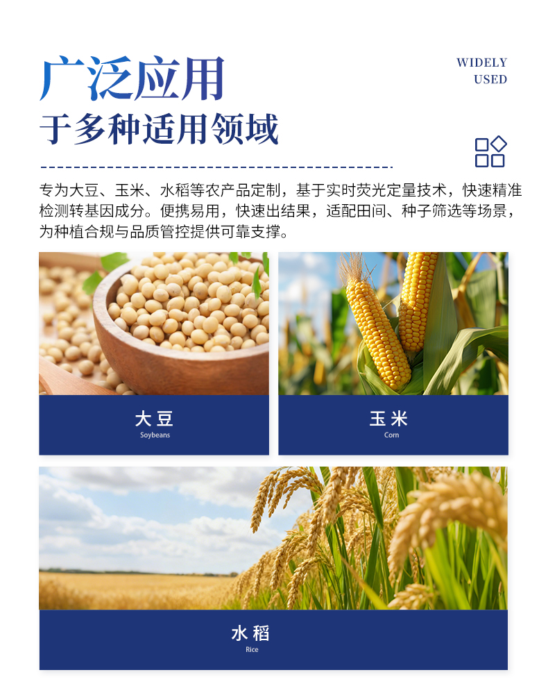 產品簡介:本款轉基因PCR檢測儀專為大豆、玉米、水稻等農產品定制,基于實時熒光定量技術,快速精準檢測轉基因成分。便攜易用,快速出結果,適配田間、種子篩選等場景,為種植合規與品質管控提供···